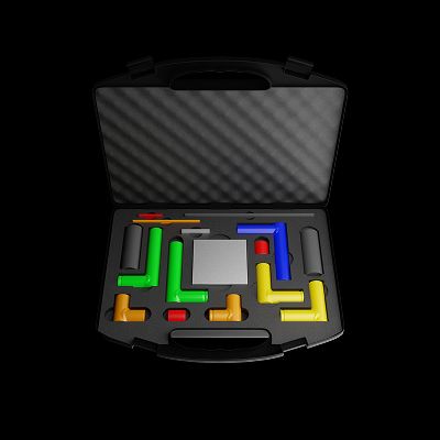 - Уровень 1 (низкий уровень тревоги) — представлен одним тест-объектом синего цвета Г-образной формы из магнитной стали.